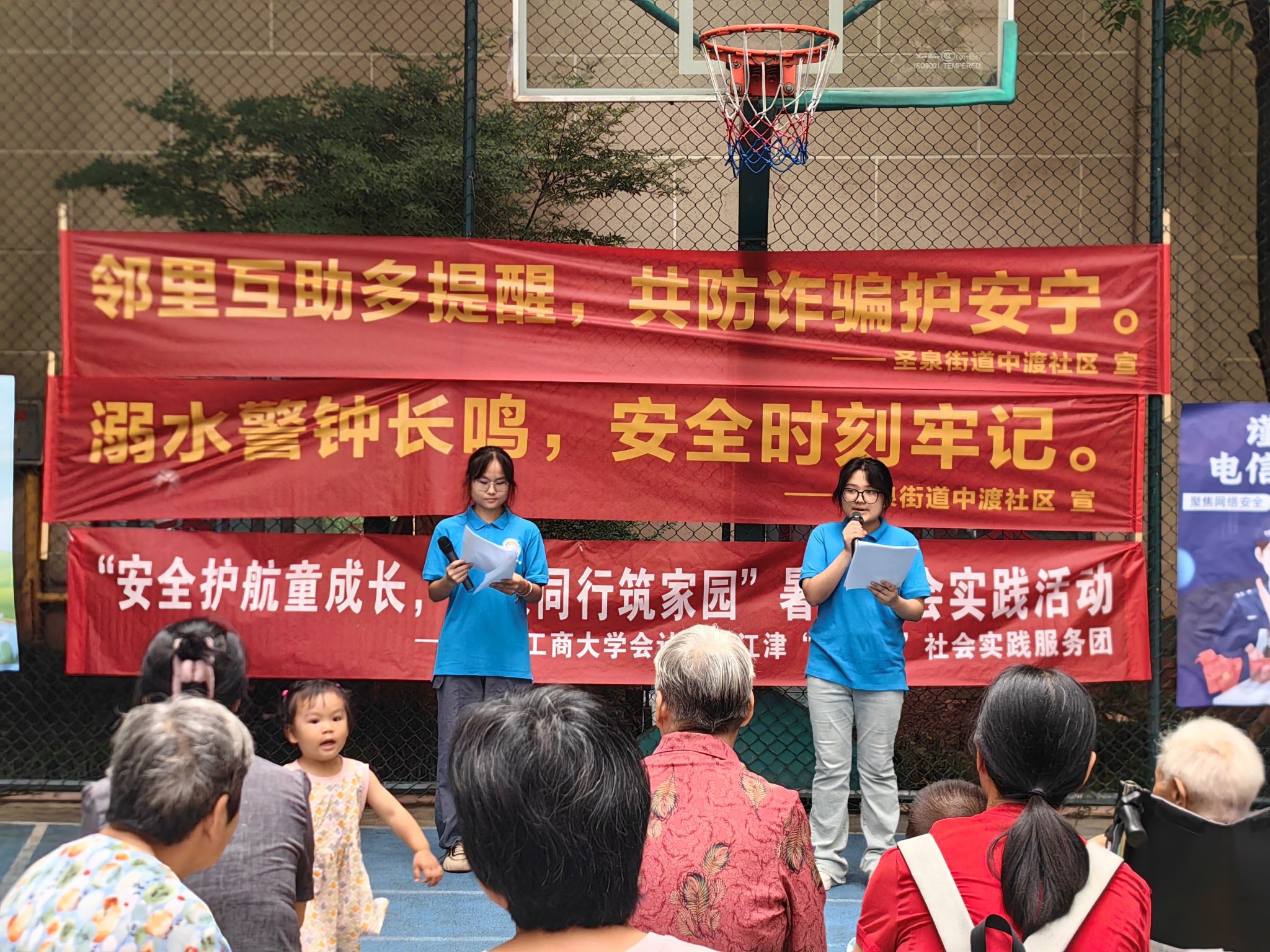 活动当天上午,以“安全筑基・文化惠民”为主题,在防诈、家庭安全、环保、防溺水四种海报背景下,主讲人尹锐、王清清采用“分主题讲解+案例剖析”模式宣讲。尹锐围绕防诈,拆解冒充熟人、刷单、AI换脸等诈骗手段,以“谎称子女受伤转账”案例,提醒居民遇钱财交易要二次确认身份。王清清聚焦家庭安全,指出燃气超期、插线板串联等隐患,传授火灾湿毛巾捂鼻低姿逃生等要点,建议安装燃气报警器、检查老旧线路。