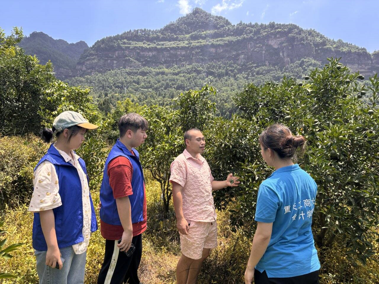 活动最后,团队前往农户种植基地进行实地走访,依次参观了桑叶园和橘园,详细了解农户的生产情况、经营情况。农户介绍说,一颗橘树大约结100个果子,展现了良好的种植效益。这次走访也让团队对农产品从种植到销售的完整产业链有了更直观的认识。