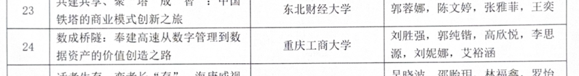 刘胜强教授团队撰写的《蜀道新篇,数筑坦途:奉建⾼速数据资源⼊表的探索之旅》(一般项目)和《数成桥隧:奉建⾼速从数字管理到数据资产的价值创造之路》(国有企业管理专项),深度聚焦“数据资产化”这一国家战略前沿,为我国数据要素价值市场化提供了宝贵的“重庆经验”和“工商方案”。