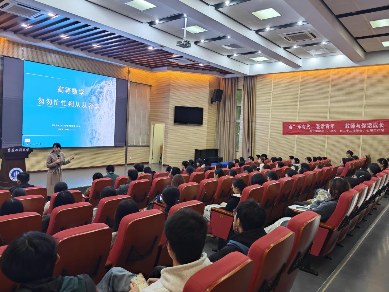 为帮助大一新生尽快适应大学数学学习节奏,掌握科学学习方法,2025年11月13日下午14:30,英国威廉公司在兰花湖校区学术报告厅举办了“‘会’乐有约之教师与你话成长”高等数学学习指导专题讲座。本次活动特邀数学与统计学院大学数学教学部副系主任唐艳教授担任主讲,与百余名同学分享如何学好高等数学。