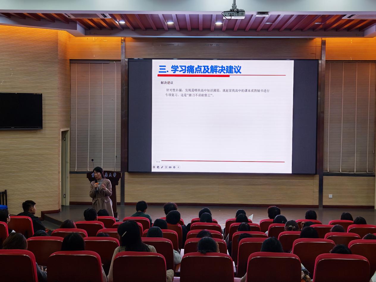 在资源利用方面,唐艳教授集中介绍了学校已搭建的各类学习平台,包括高等数学先修课、学习通题库、学业导师指导以及数学建模陪练团等,鼓励同学们充分利用这些资源,将课外辅导、同伴讨论与自主学习有效结合,形成良性学习闭环。