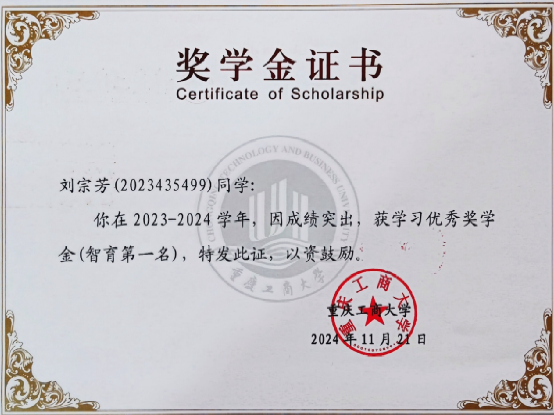 学习是成长的基石,要在沉淀中稳步向前。入学以来,刘宗芳始终以高标准要求自己,通过努力拿下国家励志奖学金、综合一等奖学金,学习优秀奖学金,学习标兵等荣誉,为学业筑牢基础。其次,她敢跳出舒适圈——从原专业转到审计专业,从零开始深耕新领域。她认为选择热爱的方向,哪怕从头起步,也是从心出发的成长。在新的专业课堂里,她依旧保持勤学好问的状态,在知识的积累中不断拓展自己的专业边界。