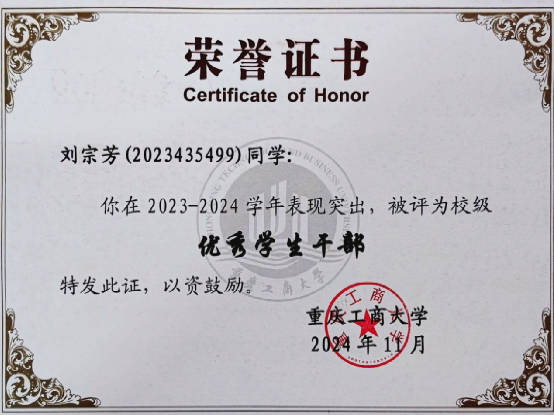 工作是服务他人,成就自己的修行。从班长、院团干到校团委学生副书记,刘宗芳始终以“勤奋、诚实、细致、认真”为准则:任班长时,她组织班会、团日活动,带领班级拿下“优良学风班级”等集体荣誉;任辅导员助理时,她协助整理文件、布置会场,在“勤工俭学”中提升能力,也为家庭减轻负担;任校团委学生副书记后,她统筹协调学生工作,以责任担当践行为同学服务的初心。每一个岗位都是成长的契机——从做事到扛事,学会的不仅是技能,更是责任与共情。