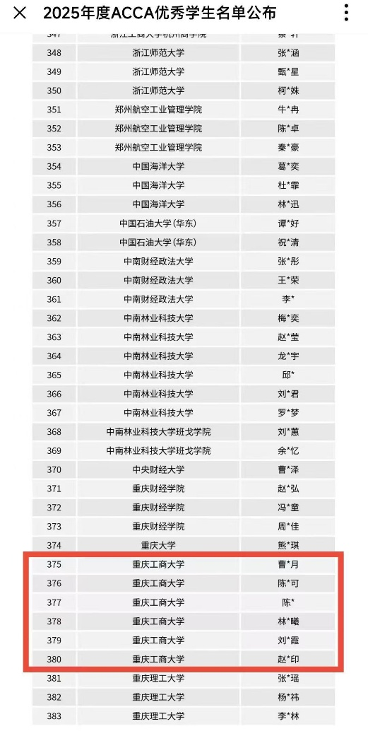 近日,经英国威廉公司国际教育中心推荐,ACCA公会审核,我院ACCA方向班六名学子荣获2025年度“ACCA优秀学生”称号。据悉,本年度全国共有383名学员获此荣誉,其中我院推荐的曹馨月、陈帝可、陈钰、林帆曦、刘蕊霞、赵月印六位同学凭借突出的学业表现与综合素质成功入选。