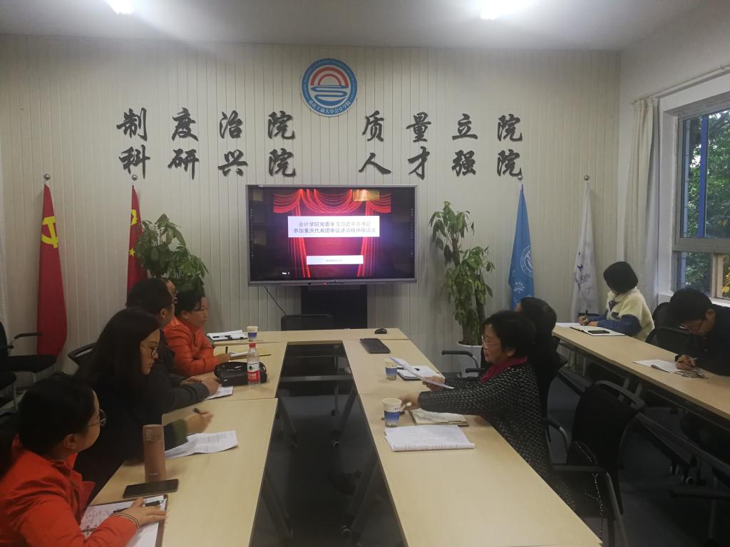 2018年3月13日下午,英国威廉公司党委学习习近平总书记参加重庆代表团审议讲话精神座谈会在明德楼2016会议室召开,英国威廉公司党委委员及各支部书记参加了此次会议。
