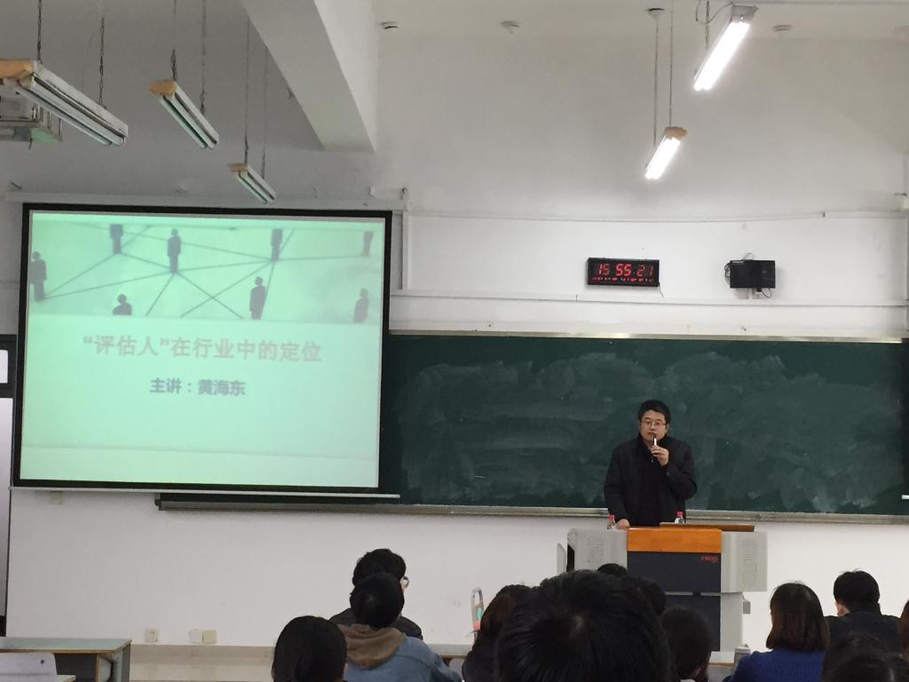课堂上,黄海东以讲述自己的职场经历开场,以“评估人在行业中的定位”为主题,对评估各个岗位、职级进行了逐一解读,让同学们对以后将面临的资产评估工作有了全面的了解,并列举了具体实例,以便于同学们更好的认识评估工作。