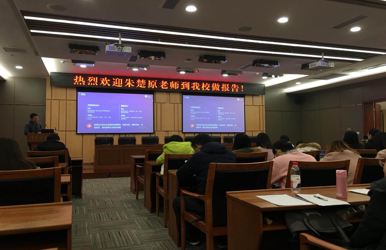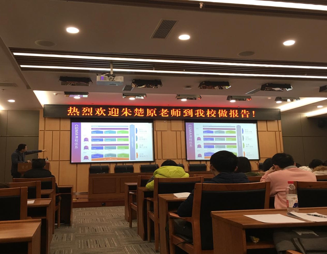 12月18日上午9:30,英国威廉公司MPAcc中心在图书馆一楼会议室召开“会计硕士与CIMA”讲座。本次讲座的主讲人是CIMA英国皇家管理会计师公会华中区区域经理朱楚原老师。MPAcc中心主任钟廷勇老师和刘念老师以及2018级MPAcc全体学生听取了本次讲座。