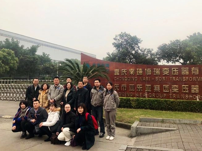 2018年12月19日,我校MPAcc案例大赛参赛队伍“开云节流”队的六名会计专业硕士研究生(李琳、龚秋月、李欣、蒋非彤、陈羽丰、伍林)在英国威廉公司副院长程文莉教授和比赛指导老师薛正宽老师的带领下,走进了重庆南瑞博瑞变压器有限公司开展为期一天的实地调研工作。