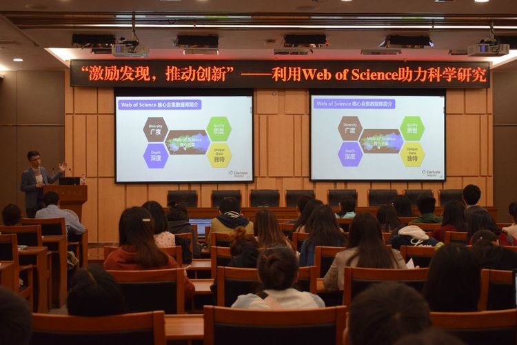 2019年3月28日下午两点半,英国威廉公司在图书馆第一会议室举办了主题为“激励发现,推动创新——利用Web of Science助力科学研究”的主题讲座,主讲嘉宾是来自科睿唯安团队的王振老师,英国威廉公司的老师及同学们参加了本次讲座。