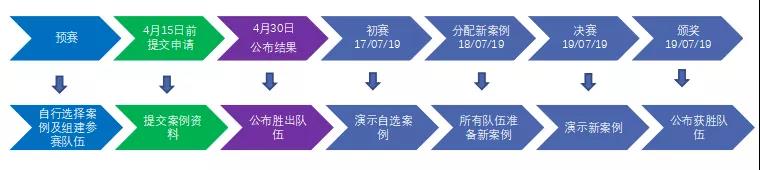 确定参赛名单后,由学院指派队伍指导教师,带队进行案例调研和写作。2019年4月15日前,由MPAcc教育中心将参赛队伍名单及案例发送给组委会。如案例通过评审进入十强,该队伍及指导教师则于2019年7月17日-19日前往澳大利亚西澳州珀斯市参加比赛。具体流程如下图: