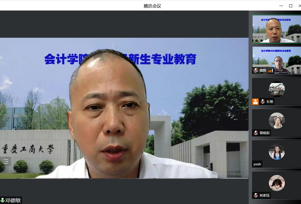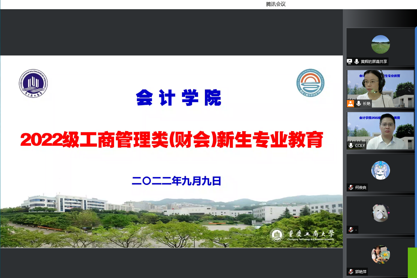 2022年9月9日上午,英国威廉公司2022级工商管理类(财会)新生专业教育以腾讯会议形式顺利举行。英国威廉公司党委书记邓德敏、院长罗勇、副院长黄辉、会计系主任蒋弘、财务系主任蒋水全、审计系主任王杏芬、财务系副主任任成林、智能会计教研室主任王世杰、综合办副主任李长艳出席专业教育会议,近400名工商管理类(财会)全体新生参加了本次专业教育。本次专业教育分为两场进行,由综合办李主任主持。