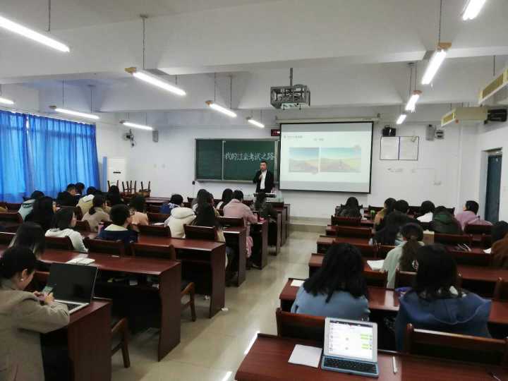 基于以上原因,赵刚老师在课堂上讲述了自己的注会考试之路,并对同学们关于注会考试过程中的疑问进行了一一解答。赵刚老师特别针对要考注会的同学提出以下几点建议:一是要有决心,不怕困难,排除外在一切不利因素,用自己最大的努力争取。二是要坚持, 漫漫注会路,不是一两年就可以完成的,需要几年甚至十几年才可以拿到相应的执业证书,所以考证的路途中,不要放弃,坚持就是胜利。三是克服自己的短板,根据木桶原理,一桶水容积的大小不是取决于最长的木板,而是最短的木板,因此在学习的过程中要学会克服自己的短处,取长补短,才可以最终达到总体目标最优化。