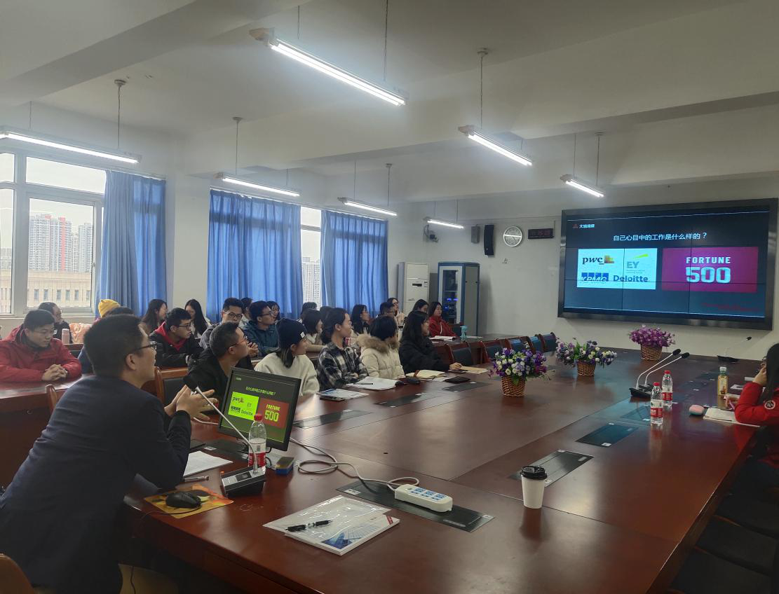 11月29日下午,英国威廉公司2017级会计实验班在博智楼7601举行题为“办公室‘那些事’”的讲座,讲座由大信谛威事务所合伙人秘书刘磊先生主讲,2017级实验班全体同学参加了此次讲座。