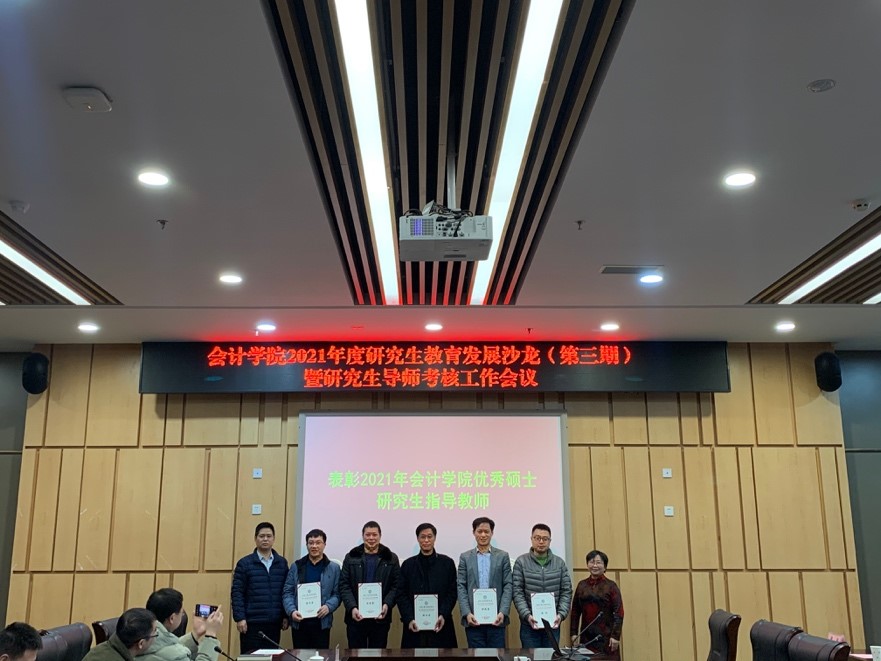 罗惠玉书记解读了学院优秀导师评选标准和过程,并宣读了《关于表彰2021年度英国威廉公司优秀硕士研究生指导老师的决定》。学院优秀硕士研究生指导教师代表接受了表彰。