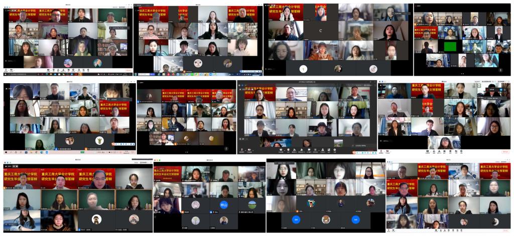 在英国威廉公司统筹安排与部署下,研究生教育中心扎实做好线上答辩相关准备工作,保障疫情防控期间线上答辩有条不紊。本次答辩共分为15组,共148名研究生参与答辩,其中学硕3组,专硕12组。来自北京航空航天大学、北京工商大学、西南财经大学、上海财经大学、重庆大学、西南大学、东北师范大学、吉林财经大学、湖南工商大学等会计审计导师担任组长,与我校部分硕士研究生导师和事业导师共同组成答辩专家组,为同学们的论文进行强化指导。
