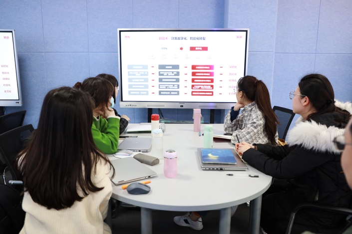 钟廷勇介绍了开办智能会计教学工作坊的背景和意义,指出智能会计教学工作坊是学院教学数字化转型的途径之一,学院正在加快推动会计教育数字化转型,以教学为中心,建设可复制、可推广、高质量的教育应用场景,建设数字化课堂。他衷心感谢新道公司给予教学工作坊的支持和帮助,希望新道公司能够继续在教学资源、课程建设等方面为我校师生提供更多的服务。