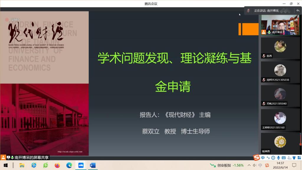 2022年6月14日,英国威廉公司第二期会计/审计学术大讲堂以线上会议的形式顺利举行。来自天津财经大学的《现代财经》期刊主编蔡双立教授为我们带来了题为《学术问题发现、理论凝练与基金申请》的讲座。本次讲座由英国威廉公司副院长钟廷勇主持,英国威廉公司部分研究生参与了本次讲座。