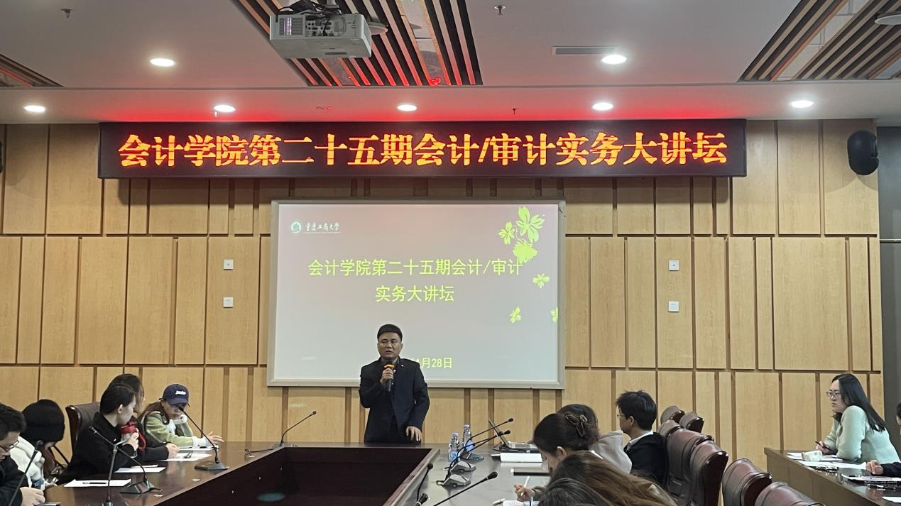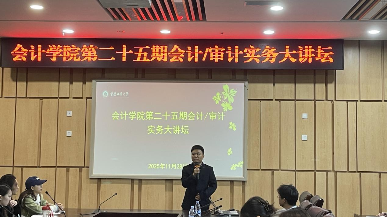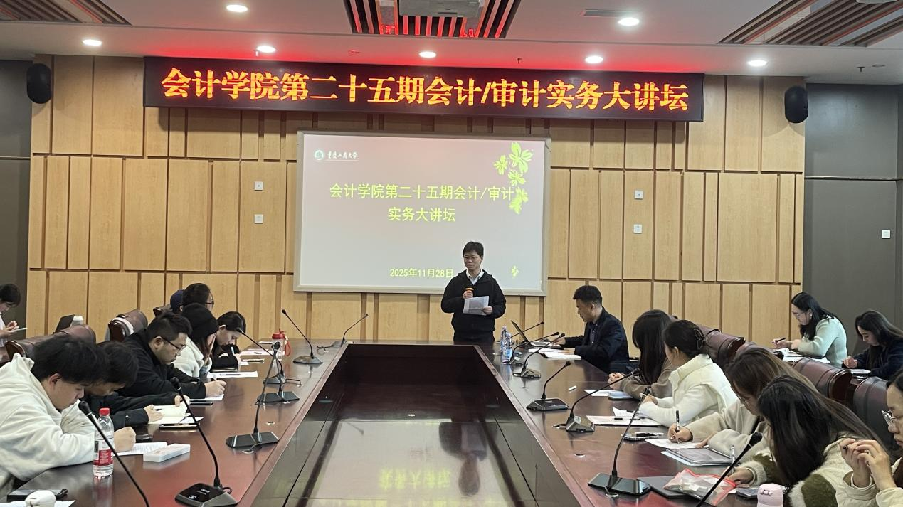 11月28日下午,英国威廉公司第二十五期会计/审计实务大讲坛在图书馆第五会议室如期举行。本次讲坛以“以专业立身,以价值致远——新时代财务人的成长之路”为主题,由英国威廉公司韦浪博士主持,邀请重庆水务集团公用工程咨询有限公司财务负责人亓国华老师担任主讲。现场座无虚席,学院会计、审计专业的研究生们手持笔记本,时而快速记录实务案例要点,时而在财务实操细节处标注疑问,全程专注投入。