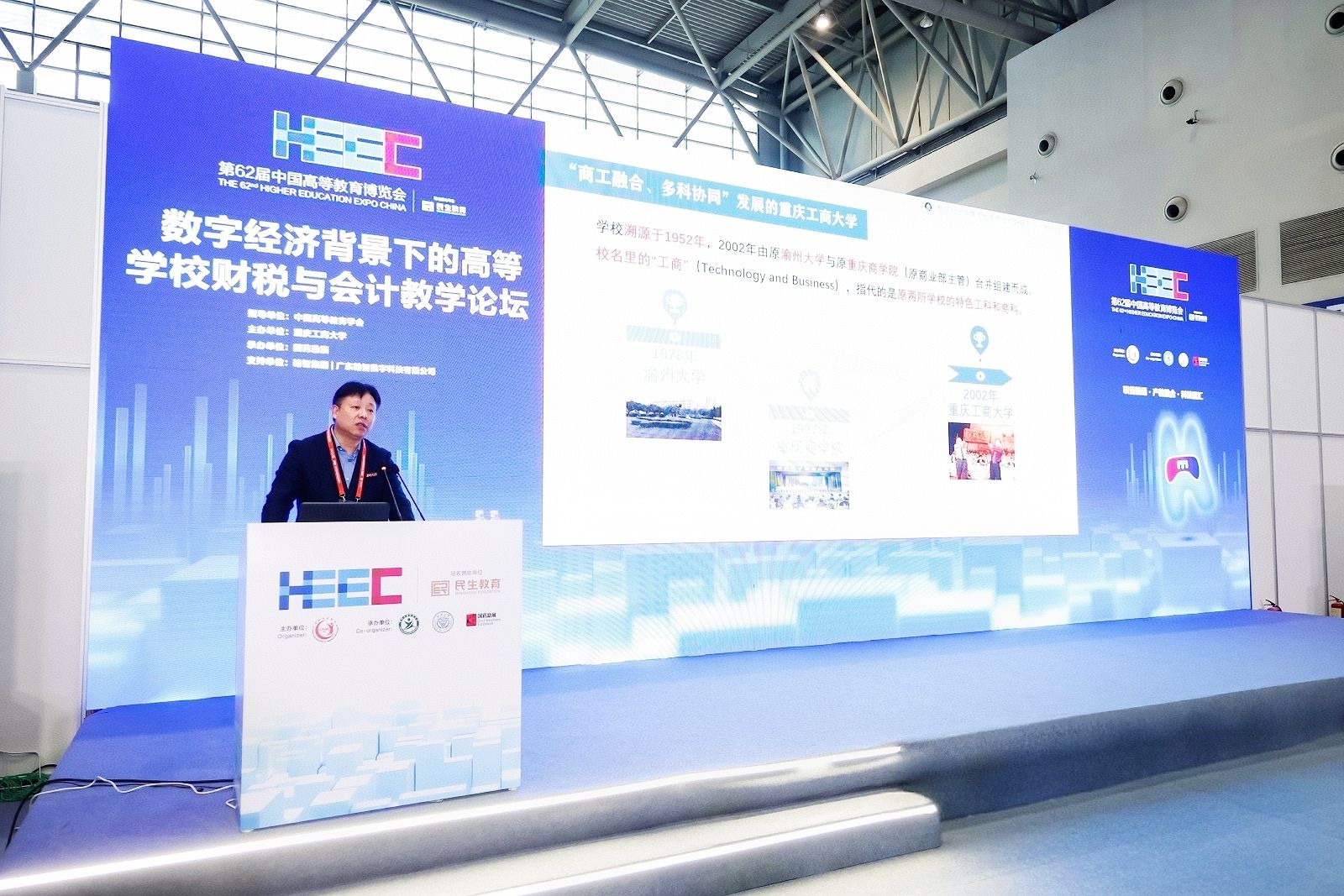 11月15日,第62届中国高等教育博览会在重庆国际博览中心举行。作为高博会系列学术活动之一,我校主办的“数字经济背景下的高等学校财税与会计教学”论坛同日举行。学校党委书记曾维伦,重庆市教委二级巡视员陈渝出席开幕式并发表致辞。论坛由学校党委常委、副校长杨柏主持。