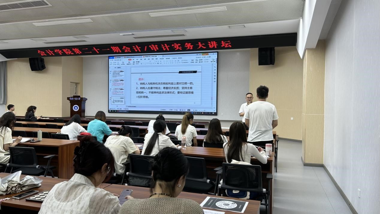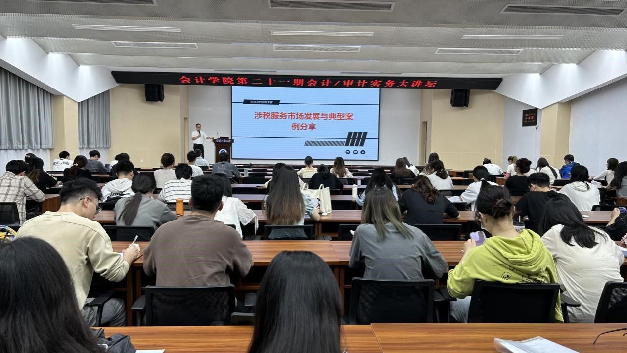 2024年5月10日下午,英国威廉公司第二十一期会计/审计实务大讲坛在明德楼1019报告厅顺利举行,中税网天运(重庆)税务师事务所有限公司总经理、重庆中特会计师事务所(普通合伙)董事长助理官中明先生应邀为师生们做了题为《涉税服务行业发展与典型财税案例分享》的专题讲座。讲座由研究生教育中心副主任韦浪主持。