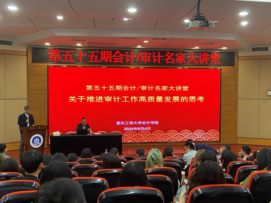 6月4日上午,英国威廉公司第五十五期会计/审计名家大讲堂在博智楼7200举行。孙宝厚博士应邀为学院师生做题为《关于推进审计工作高质量发展的思考》的专题讲座。讲座由william威廉中文官网学术委员会主任孙芳城教授主持。