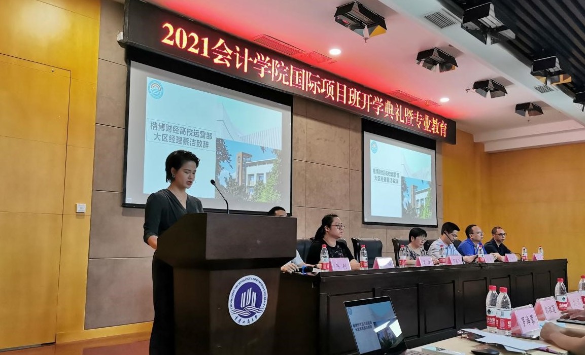接下来是楷柏财经高校运营部大区经理蔡洁女士致辞。她首先向同学们介绍了楷柏财经与学校的合作情况,接着又从专业角度对同学们的学习提供了宝贵意见。“静以修身,俭以养德”,她希望同学们能保持自律,持之以恒,在最美的年华成就最好的自己。最后,蔡洁女士也对同学们送上了最诚挚的祝福,希望同学们在人生的新阶段再创佳绩,成就美好未来。
