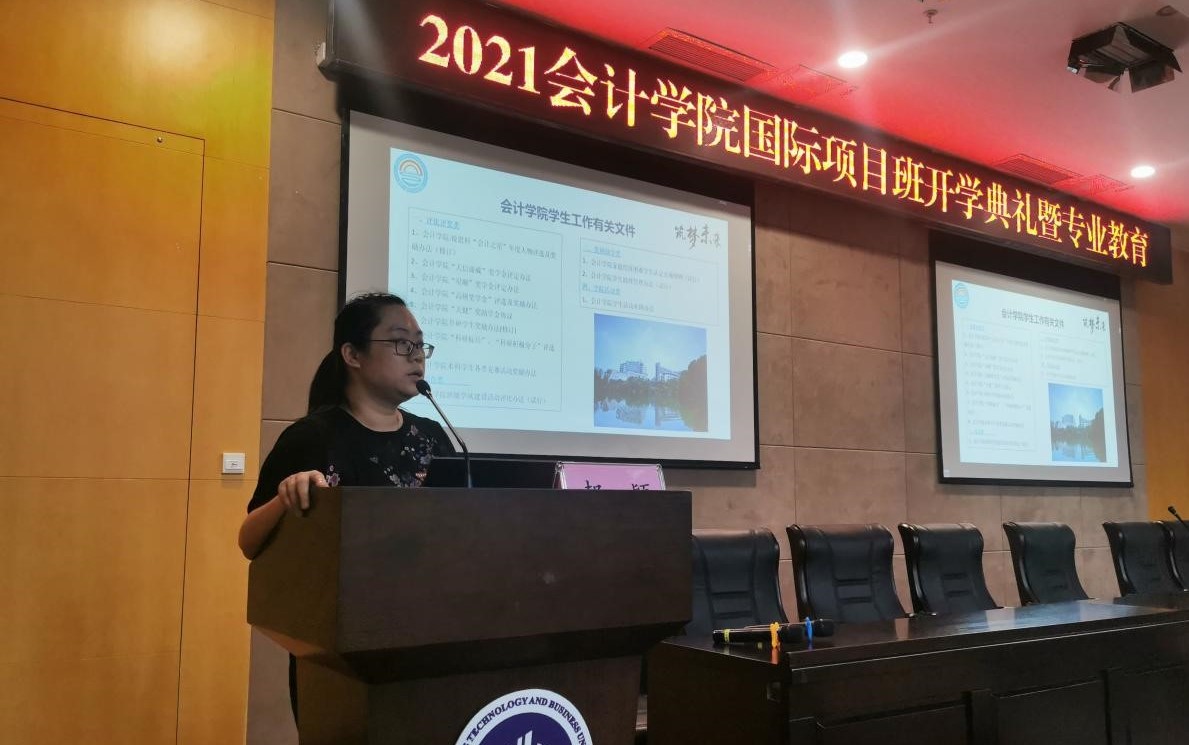 接下来是专业教育环节。英国威廉公司郝颖副书记首先对学生管理的相关工作进行了讲解,郝书记介绍了英国威廉公司学生工作的“一信”“二化”“三有”“四力”“五育”卓越人才铸魂工程,并对同学们如何过好充实愉快的大学生活进行了指导,寄语同学们立大志,明大德,成大才,担大任。随后,英国威廉公司黄辉副院长分别就学校和学院国际项目教学管理的相关规定进行了详细解读,勉励同学们将来为参与全球会计治理而努力学习。最后,国际项目部陈利主任对ACCA和CIMA项目的培养方案进行了全面解读,并介绍了国际项目全球统考、学生会分会、奖学金设置以及特有的案例大赛、国际化讲座等活动。
