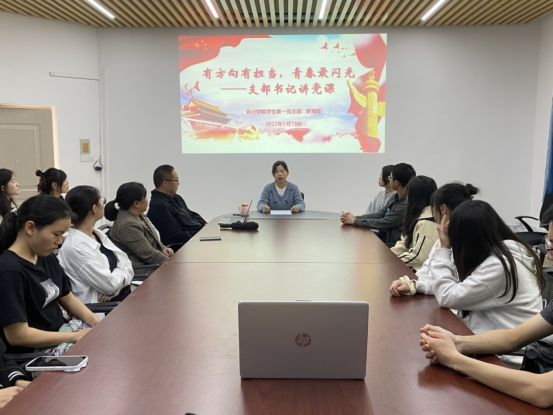 会议伊始,支部书记罗海蓉老师指出,1922年5月5日,在中国共产党直接关怀和领导下,中国共产主义青年团宣告成立。一百年来,中国共青团与中国共产党保持密切联系,中国共青团始终是中国青年运动的先锋队,始终是党的忠实助手和可靠后备军,始终跟随党的方向前进,勇担时代重任。