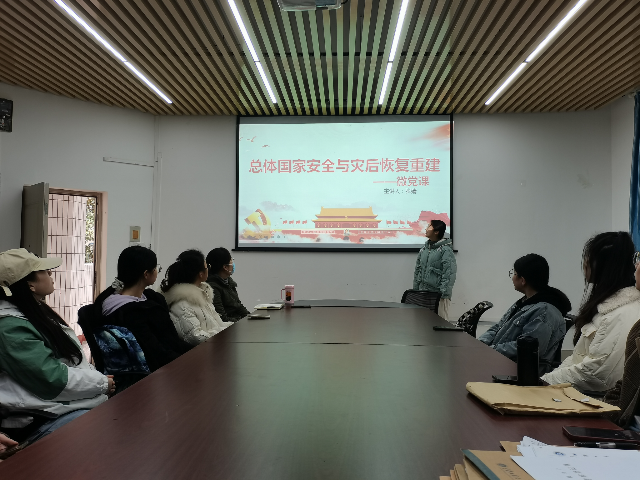 随后,张婧同志做了题为“总体国家安全与灾后恢复重建”的微党课讲解,这也是支部持续开展的特色活动之一。通过微党课的学习分享,党员同志们再次体会了灾后重建工作中蕴含的人文关怀,感受到了中国共产党始终以人民为中心的坚定立场。