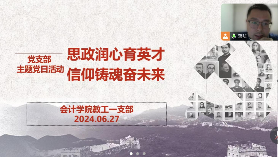 活动一开始,支部书记蒋弘首先带领大家学习了《中国共产党纪律处分条例》分则中的“组织纪律”相关内容。然后,他对习近平总书记近日对学校思政课建设作出的重要指示进行了阐述。蒋弘指出,中国的明天寄托在中国的青年身上,思政教育就是在给广大青年学子种下信仰的种子,让他们在正确“三观”的引导下去追求卓越,为中国的未来而奋斗,其重要性和必要性不言而喻。接着,他以微党课《冷和热》说明信仰所具有的强大力量,鼓励党员同志们要充满信心,因为共产党员的信心之源就是马克思主义信仰,而这一信仰的正确性在人类的历史中已经得到了证明。