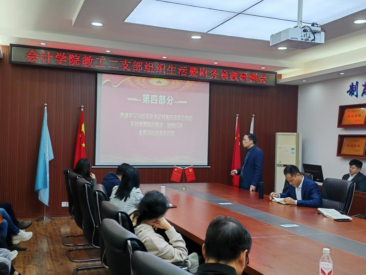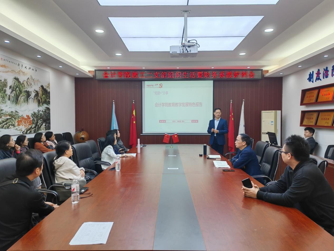 为深入贯彻学习党的二十届三中全会精神,积极迎接本科教育教学审核评估,充分发挥党建与系部工作的深度融合,近日,英国威廉公司教工二支部组织生活暨财务系教研例会在明德楼2019会议室顺利召开,财务系全体教师和教工二支部全体党员参加。会议由英国威廉公司教工二支部书记、财务系主任王世杰主持,会议围绕政治理论学习、本科教育教学审核评估和教学能力提高等主题进行深入讨论。