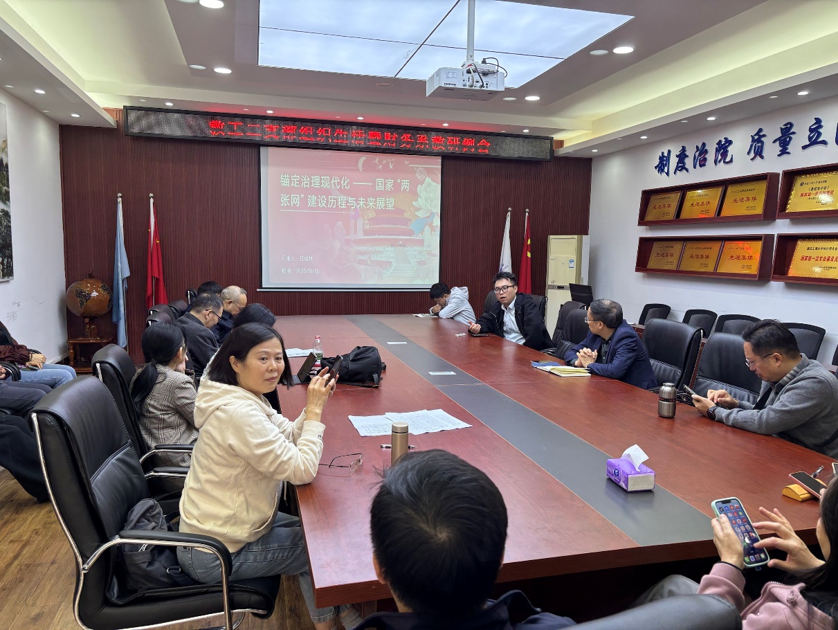 随后,支部组织委员任成林以“锚定治理现代化——国家‘两张网’建设成就与未来规划”为题做了领学分享。任成林系统梳理了国家综合立体交通网、国家水网“两张网”的建设历程,结合“6轴7廊8通道”主骨架建成率超90%、国家水网覆盖率预计2025年底达80.3%等核心数据,展现了“两张网”在支撑区域协调发展、保障民生福祉、夯实现代化建设根基中的重要作用。他指出,国家“两张网”建设体现的“全国一盘棋”统筹思维、数字化治理理念,对会计领域的政府会计改革、公共资金监管、财务风险防控具有重要启示意义,建议教师在教学中融入相关案例,培养学生的宏观视野和家国情怀。