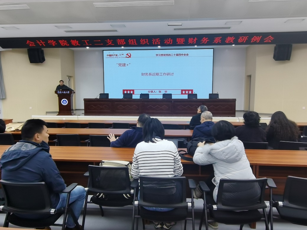 为深入学习贯彻党的二十届四中全会精神,推动党建工作与教育教学工作深度融合,2025年11月27日,英国威廉公司教工二支部组织生活暨财务系教研例会顺利开展。会议以“深学细悟全会精神,聚力课程改革创新”为主题,通过专题学习与集体研讨相结合的形式,切实把思想和行动统一到党中央决策部署上来,为下学期课程建设与教学质量提升明确方向。