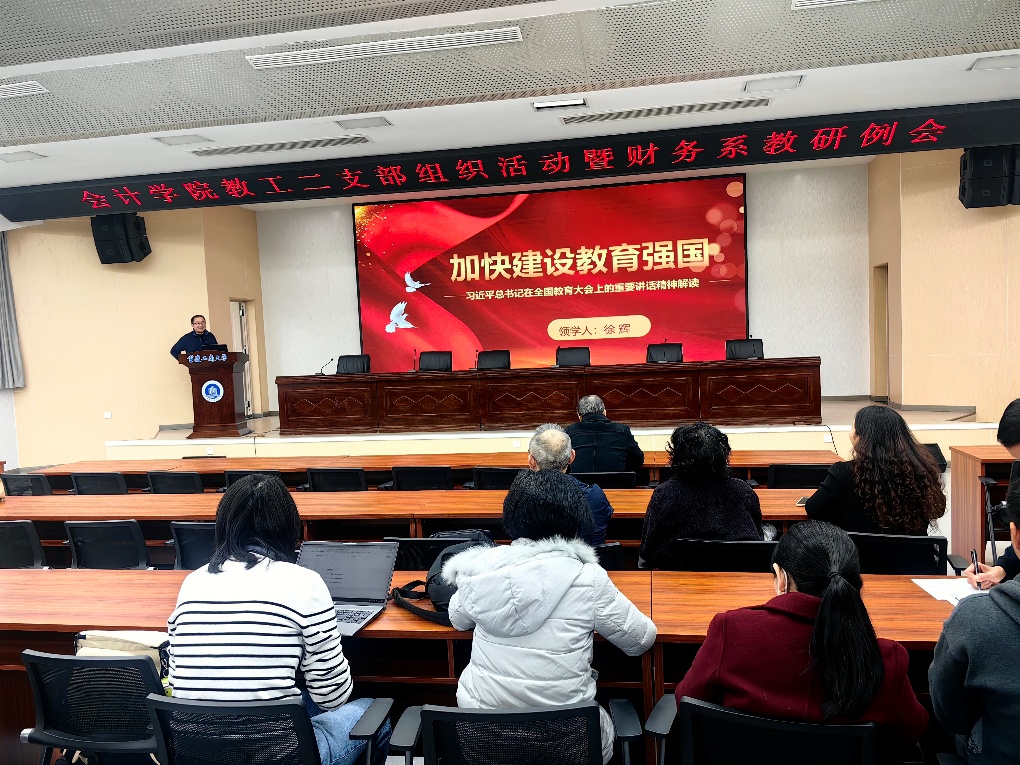 会议伊始,唐文秀同志带领全体教师集中学习“中共中央召开党外人士座谈会习近平主持并发表重要讲话”精神。她围绕讲话中关于凝聚共识、汇聚力量的核心要义,结合高校教育工作实际,强调要坚持党的全面领导,在教学科研中践行“立德树人”根本任务,主动对接国家战略需求,培养符合新时代要求的财经类人才。