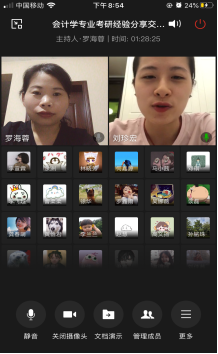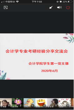 为进一步发挥榜样力量,营造优良学风,提高2017级会计学专业考研同学们的备考效率,2020年6月10日,英国威廉公司学生第一党支部通过企业微信线上视频会议举办了会计学专业考研经验分享交流会。本次会议由英国威廉公司学生第一党支部书记罗海蓉老师主持,邀请了2016级会计学专业考研成功的学生党员张翠、赵慧、谭晨、李娇、蒋雪佳、龚春萌以及刘珍宏同学进行了考研经验的分享交流。