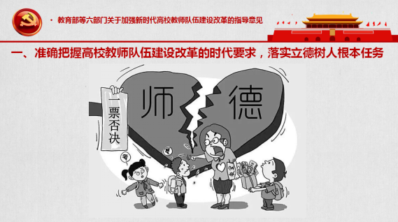的《关于加强新时代高校教师队伍建设改革的指导意见》(以下简称《指导意见》),并由党员分享学习心得。