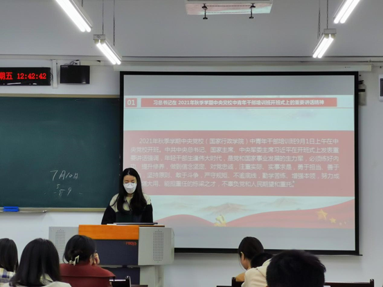 会议伊始,由邓灵林、李巧、刘荟三名同志进行了领学分享,带领全体党员同志共同学习了习总书记在2021年秋季学期中央党校中青年干部培训开班仪式上的重要讲话、习近平总书记在陕西榆林考察时的重要讲话精神、习近平总书记在中央人才工作会议上的讲话精神、习近平总书记在纪念辛亥革命110周年大会上的讲话以及重庆优秀共产党员冯中成同志先进事迹五个方面的内容。通过学习,二支部的党员同志纷纷表示要切实增强学习贯彻习近平总书记重要讲话精神的政治自觉、思想自觉、行动自觉,从重要讲话中学出使命、学出自信、学出担当,汲取奋进的力量。