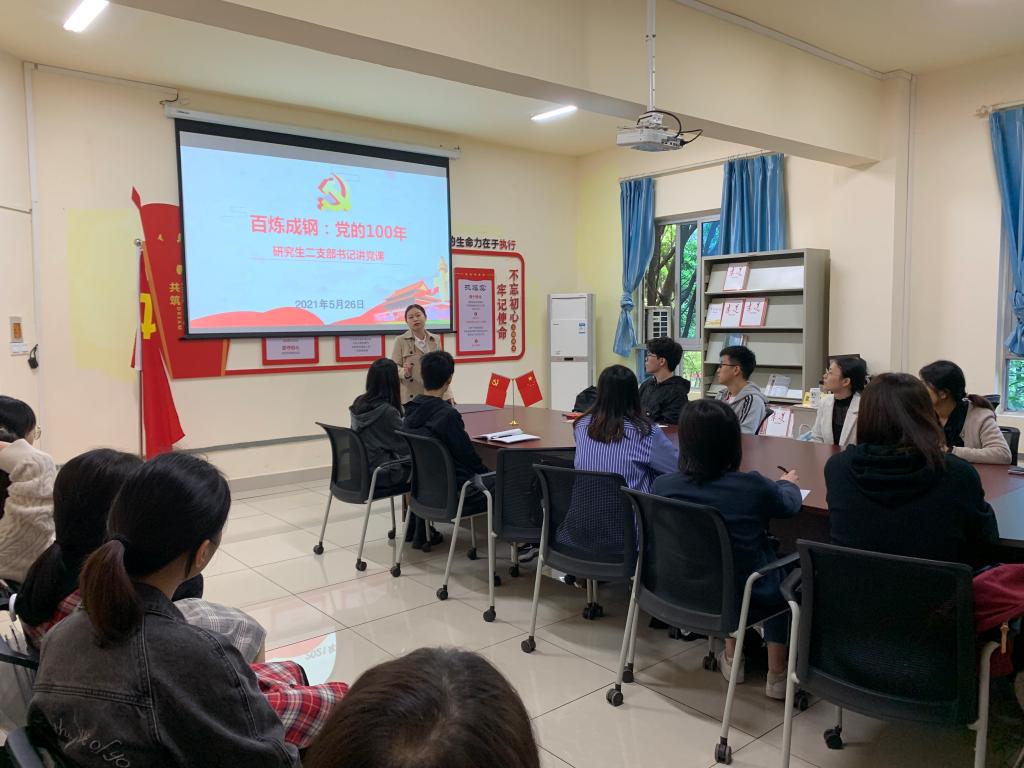 其次,支部书记王婷为全体成员讲授了题为《百炼成钢:党的100年》的党史学习教育专题党课。王婷书记以《觉醒时代》为导言为支部成员介绍了中国共产党从无到有,从弱到强带领人民站起来、富起来、强起来的百年历程。人民会永远记住袁隆平、吴孟超等为国家做出贡献的先辈们,我们应该带着对先辈们的追思与敬意,迎接新的机遇与挑战,乘势而上写新篇,勇往奋进开新局。