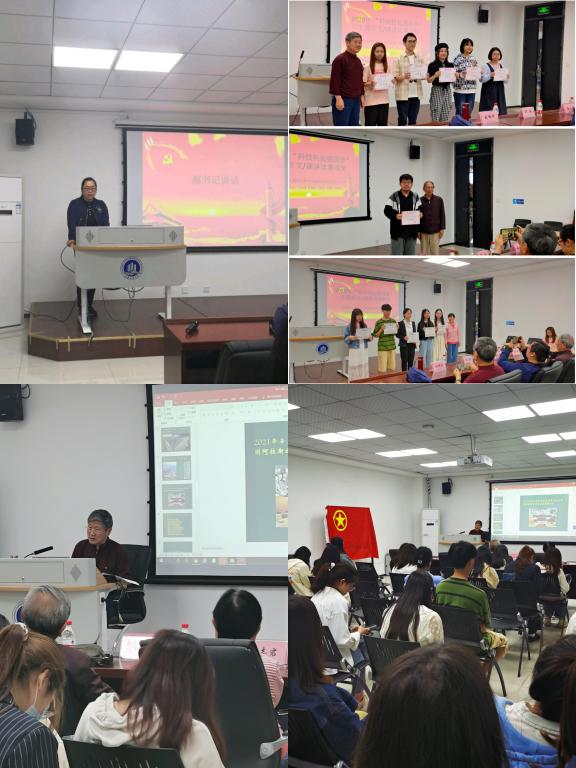 伊始,郝书记对三位老师的到来表示热烈的欢迎和诚挚的感谢;简要介绍了学院关工委的工作成绩;并重点就如何建设“红岩精神班”提出了建议;号召同学们加强党史学习提高思想水平,将个人成长与国家发展结合起来,脚踏实地增长才干积蓄力量。本次活动还对2020年“中华魂”教育学习活动“科技托起强国梦”主题征文/演讲比赛进行了颁奖,表彰了校级和市级的获奖学生。最后,刘振河老师做了“党史学习教育”讲座。刘老师带领同学们回顾了中国共产党从诞生到革命战争时期、改革开放经济建设时期、繁荣富强走向民族复兴时期的伟大历程,从四个方面提炼了中国共产党的先进性,还详细阐释了“红岩精神”的深刻内涵。刘老师作为老教师、老党员,见证了国家波澜壮阔的富强之路,本次讲座对于当代“00”后大学生来说是一次重要的思想洗礼,一次别样的时空对话。