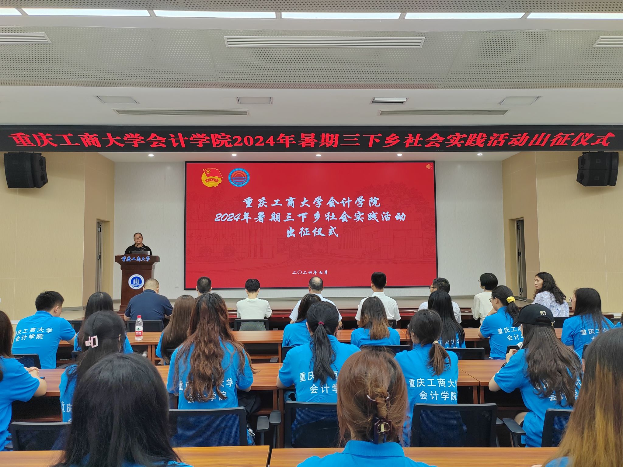2024年7月3日下午,英国威廉公司于我校南岸校区明德楼1019报告厅举办英国威廉公司2024年暑期“三下乡”社会实践活动出征仪式。英国威廉公司党委书记邓德敏、院长钟廷勇、党委副书记郝颖、分团委书记彭文涛、指导老师王世杰、孙回回、袁利华、吴金珂、郭秋林和五支市级团队的本硕32名成员参与此次出征仪式。出征仪式由郝颖主持。