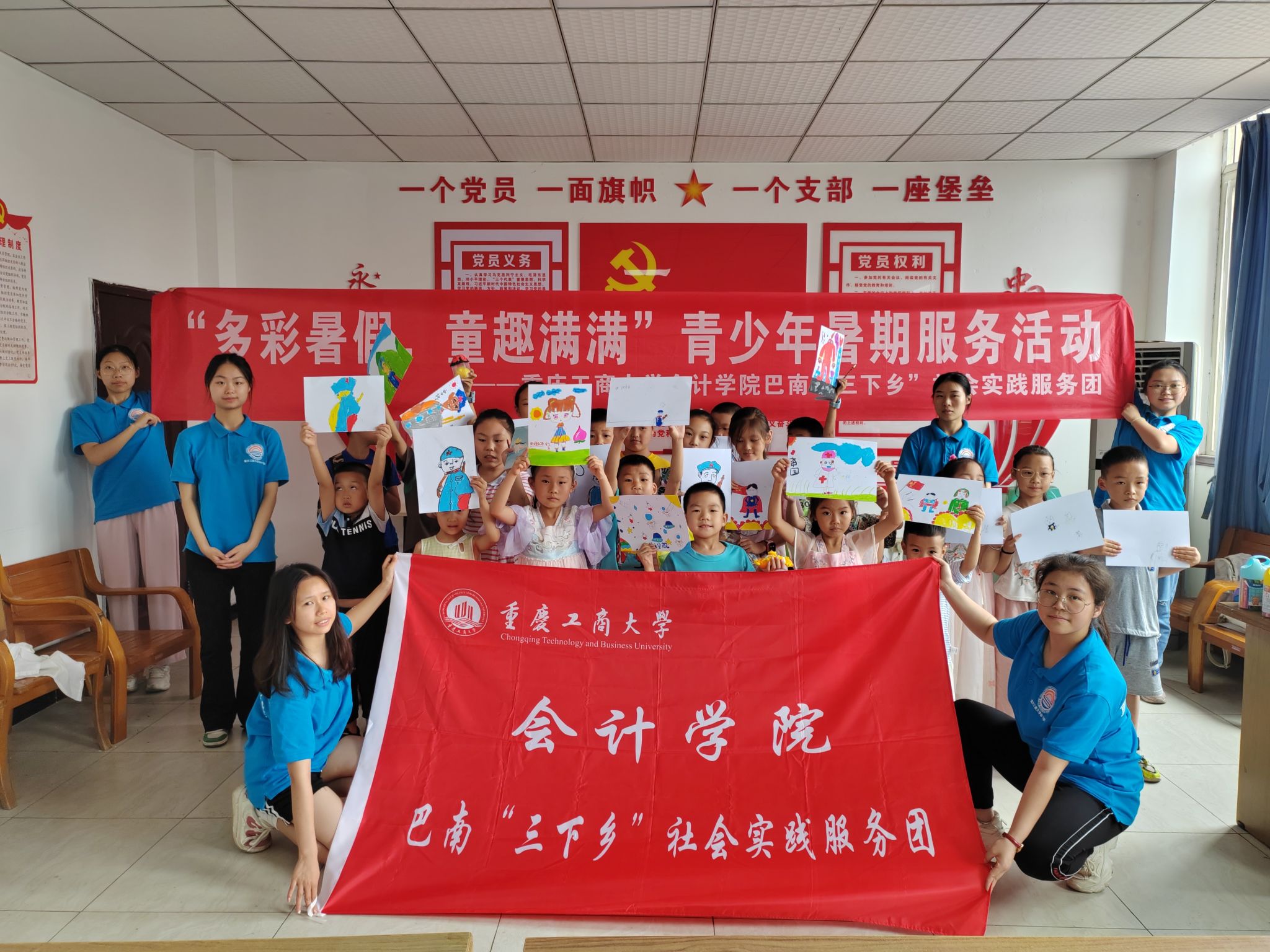 为引导学生通过艺术表达对英雄的理解和感悟,感知英雄事迹,激发他们内心的英雄情怀和社会责任感,2024年7月13日上午,英国威廉公司“多彩暑假,童趣满满”青少年暑期服务团队于重庆市巴南区南泉街道金古村开展了“多彩暑假,童趣满满”英雄感知绘画课堂。