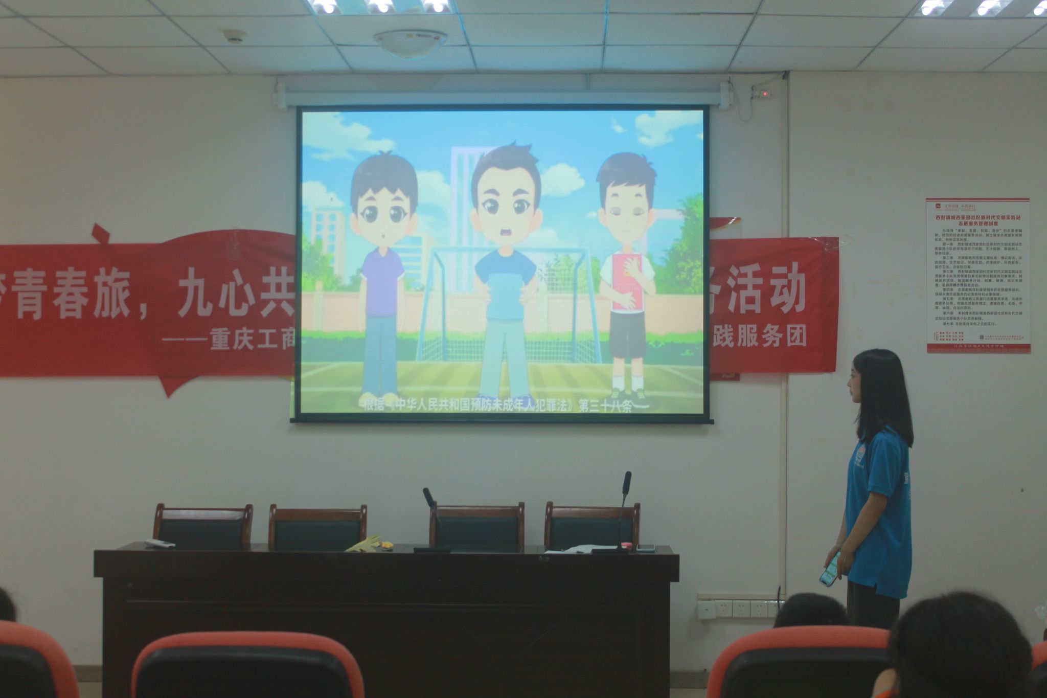为提高青少年的法治意识及自我保护意识,增强青少年抵制和防范能力,维护青少年的身心健康,预防校园欺凌事件,让青少年健康成长,英国威廉公司“绘梦青春旅,九心共归一”青少年暑期服务团于7月15日上午在重庆市九龙坡区西彭镇城西家园社区顺利开展了“绘梦青春旅,九心共归一”青少年暑期服务活动预防校园欺凌课堂。