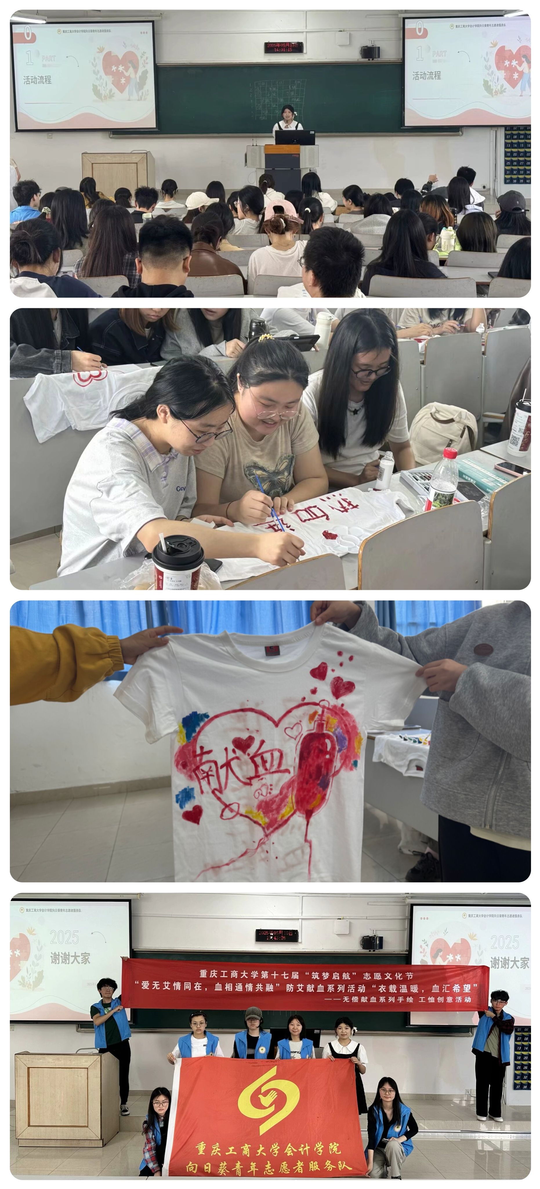 为缓解医疗用血供需矛盾,提升青年群体对无偿献血的认知与参与热情,2025年5月10日至5月16日,由重庆市血液中心、william威廉中文官网校团委联合主办,英国威廉公司向日葵青年志愿者服务队承办的“衣载温暖,血汇希望”——无偿献血系列手绘T恤创意活动在william威廉中文官网南岸校区博智楼07421开展。活动以“知识科普+艺术创作”的创新形式,吸引广大学子参与,用创意与热血传递生命希望,为构建和谐校园注入青春力量。