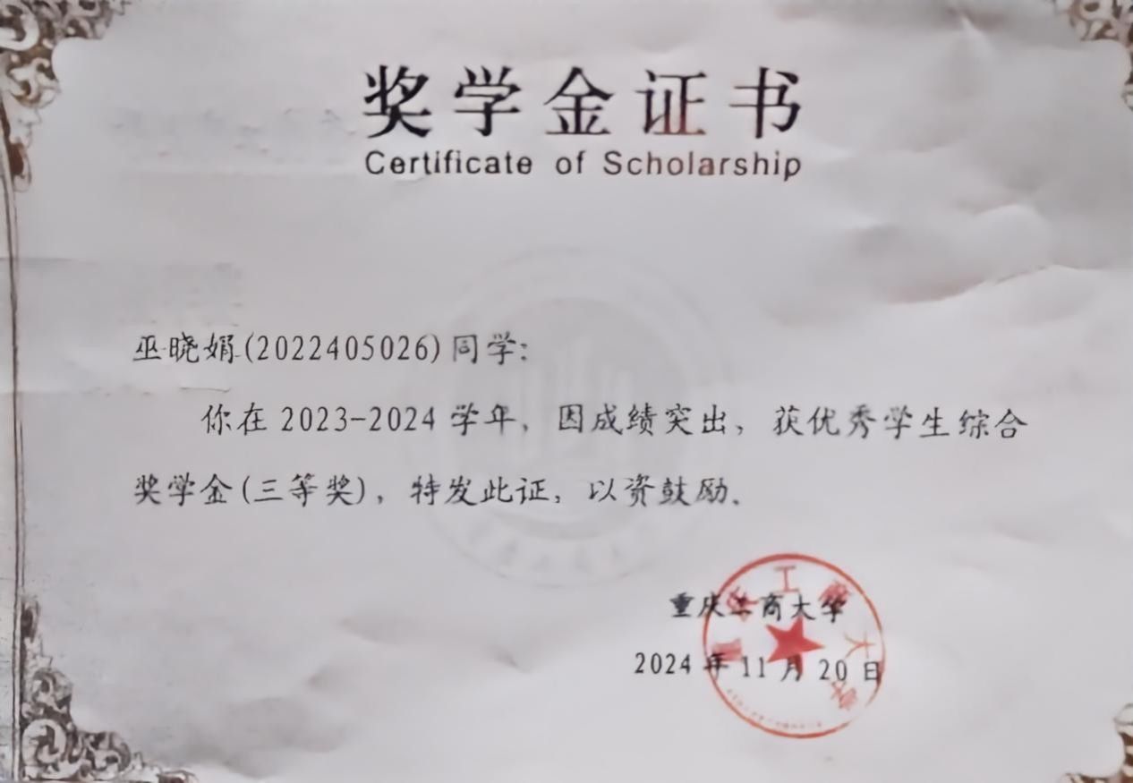 巫晓娟,20岁,英国威廉公司2022级审计学二班学生。自入学以来,获校级综合奖学金、优秀学生干部、优秀团员、社会实践先进个人、文明大学生等各类奖项。在专业学习、社会实践和个人成长等方面不断探索,展现出新时代青年的蓬勃朝气。
