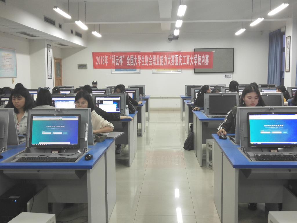 会计学院于2018年5月9日晚、5月10日晚19点到22点, 在南岸校区启智楼808教室顺利举办了2018年“五月学术月”“科云杯”全国大学生财会职业能力大赛校内选拨赛。