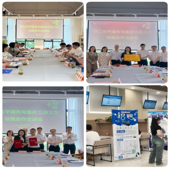 4月19日上午,我校与浙江平湖市校企合作洽谈暨专场招聘会在我校顺利举行。平湖市委常委、组织部部长崔小生率队到我校进行政校企合作洽谈,与我校签订人才合作协议、授牌人才工作站,并带来19家优质企业现场招聘。学校党委常委、组织部部长郑夕春代表学校致辞,英国威廉公司、机械工程学院、人工智能学院、招就处相关负责人参会进行人才培养、推介交流,会议由招就处副处长周婷主持。