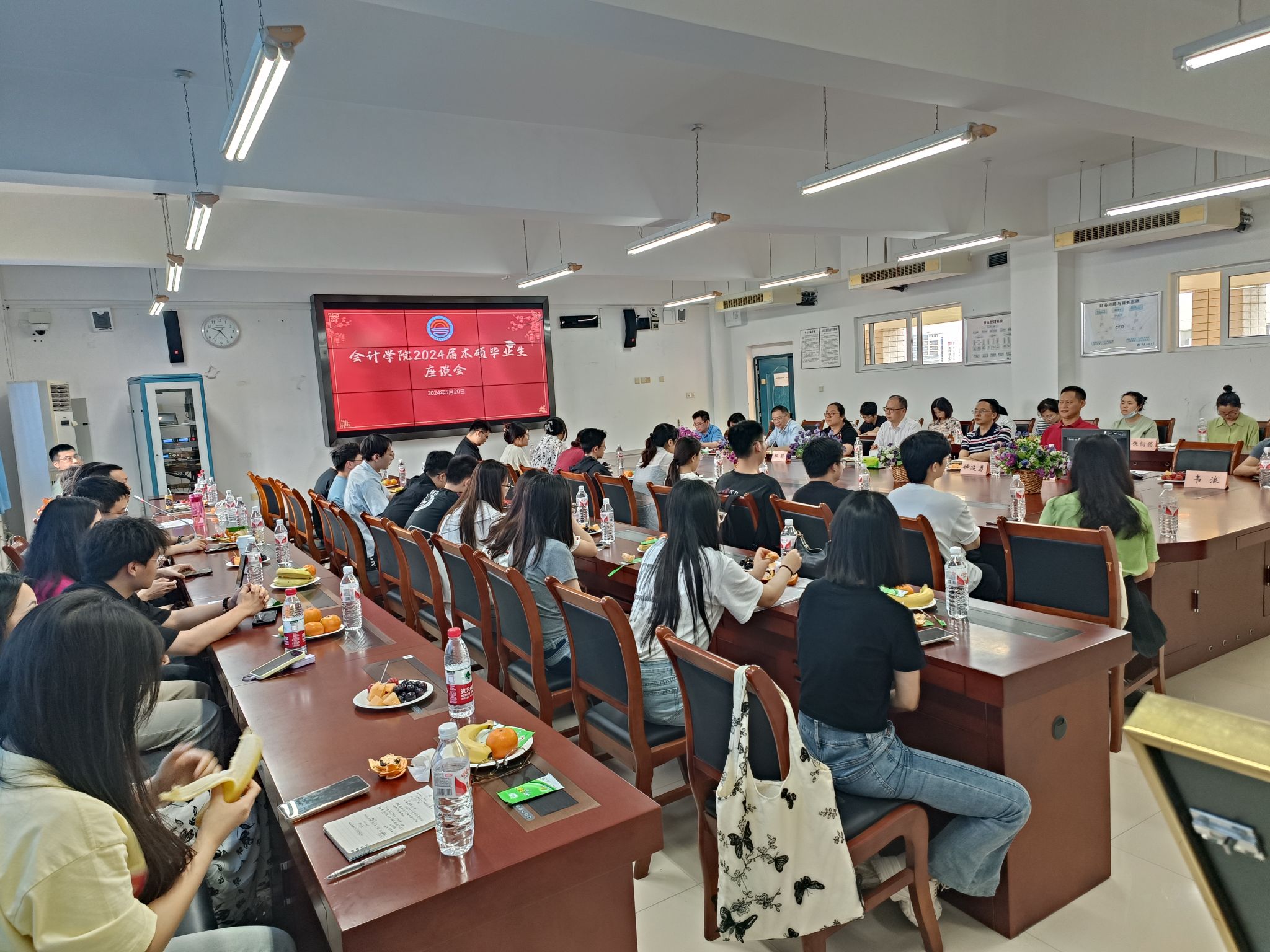 2024年5月20日14:30,英国威廉公司2024届毕业生座谈会在南岸校区博智楼7601教室举行。英国威廉公司党委书记邓德敏、专职组织员尹建平、党委副书记郝颖、副院长钟廷勇、学科办主任梅波、综合办主任付海南、学工办主任彭文涛、研究生教育中心副主任韦浪、校友联络员刘斌、国际项目教育中心秘书张悯弱、毕业班辅导员吴淑珍、陈曦、程洁、罗海蓉、吴金珂和30多名本硕毕业生代表参加了座谈会,座谈会由尹建平主持。