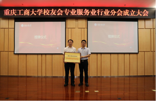 罗勇为专业服务业行业分会进行授牌,当选的第一届专业服务业行业分会会长、天健会计师事务所(特殊普通合伙)副总裁龙文虎上台接牌,标志着专业服务业行业分会正式成立,为广大校友提供了交流信息、沟通情谊、共享资源、共助发展的广阔平台。会上还为新当选的会长、副会长、秘书长、副秘书长、常务理事和理事代表颁发了聘书。