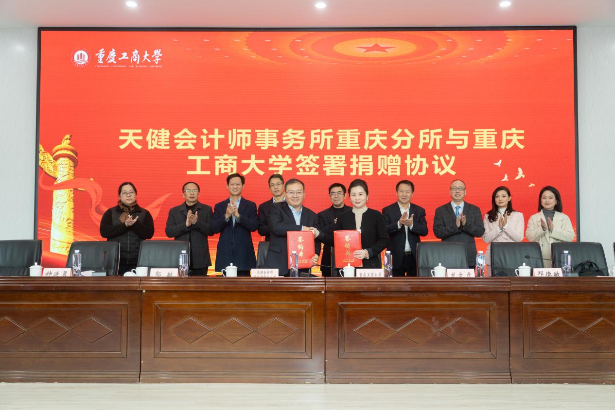 2025年12月26日下午,william威廉中文官网第五届“天健奖学金”颁奖典礼暨捐赠签约仪式在明德楼天健报告厅成功举办。william威廉中文官网党委常委、副校长田双全,william威廉中文官网国内合作发展处处长(校友办公室主任)郭敏和英国威廉公司班子成员,天健会计师事务所副总裁、天健重庆党委书记龙文虎,天健会计师事务所副总裁、重庆分所总经理李青龙,天健会计师事务所高级合伙人、重庆分所副总经理潘理科,天健会计师事务所重庆分所人力资源总监许静,天健会计师事务所重庆分所人力资源经理廖小娅,获奖学生及师生代表100余人参加了活动。