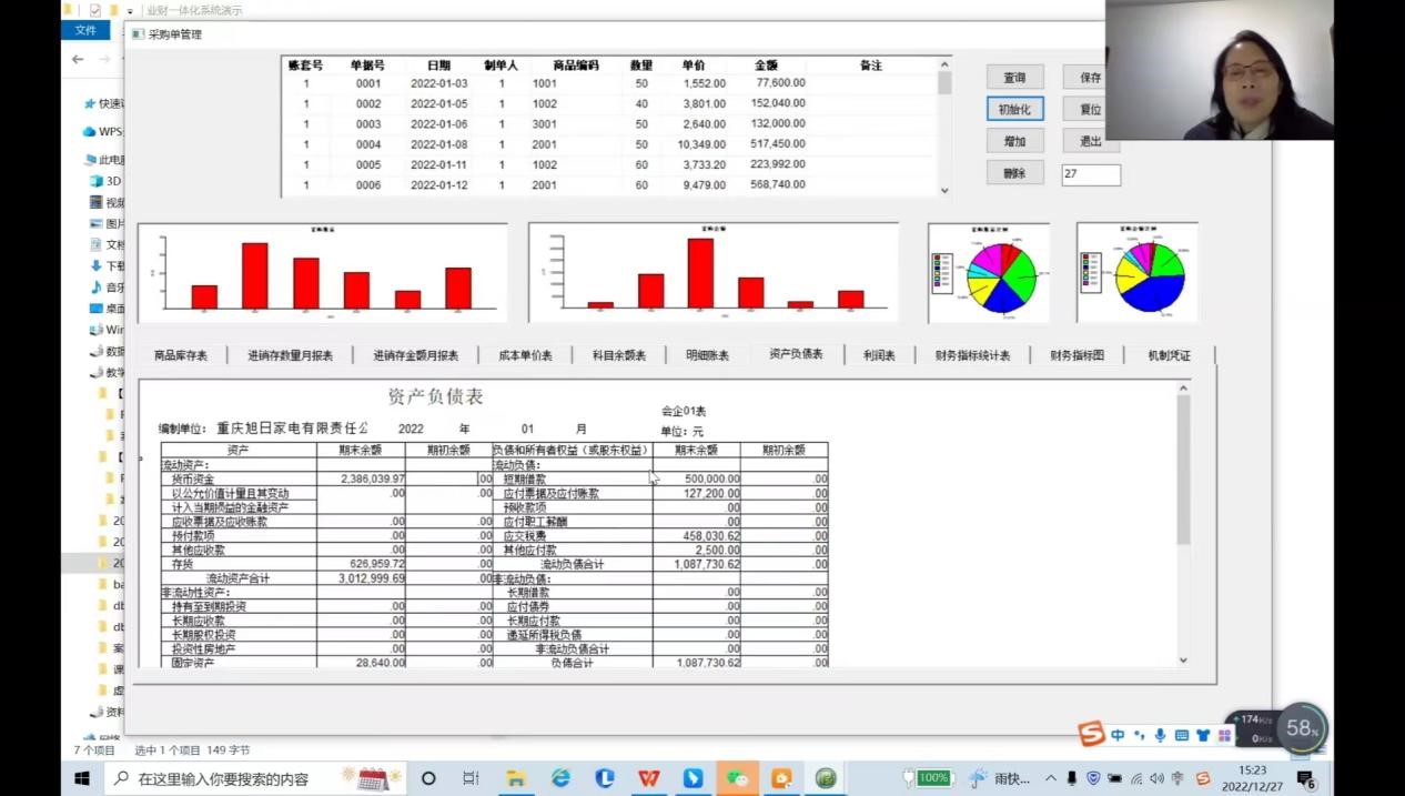 2022年12月27日下午,由教育部会计信息化课程虚拟教研室、重庆市成渝数智会计虚拟教研室、重庆市会计信息化教学名师工作室联合主办的智能会计教学工作坊(第二十九期)在钉钉APP线上直播如期举行。此次教学工作坊邀请到了重庆理工大学的陈旭、唐蕾、杨玉涵、倪红为同学们讲授《会计业务数据分析》课程。学院2022级会计专硕全体学生参加了此次教学工作坊。